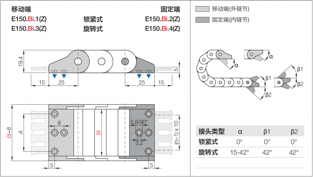 | Bi | ZB接头代码|锁紧式 | ZB接头代码|旋转式 | A | 齿数nz | ||