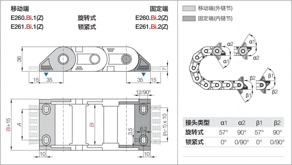 | 拖链代码 | Bi[mm] | Ba[mm] | R[mm] | 重量[kg/m] |