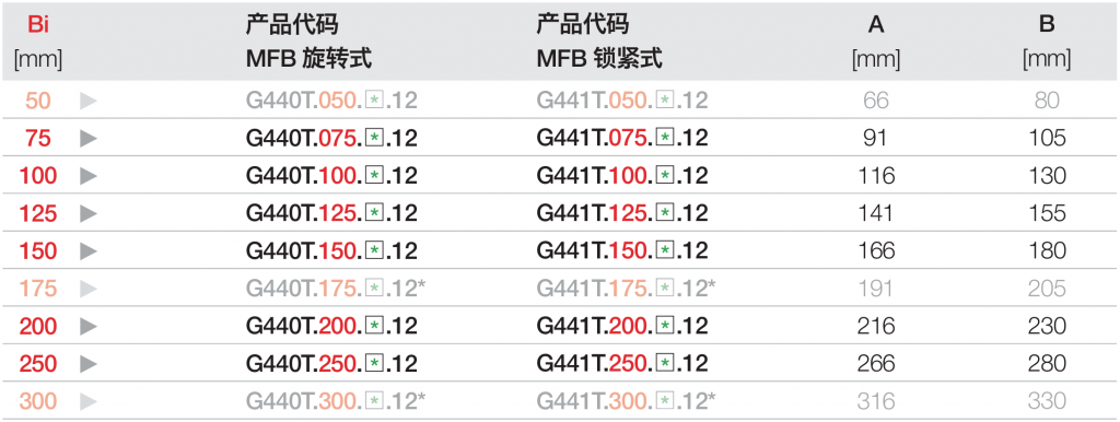 内宽 Bi : 50 - 300 mm