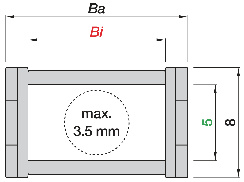 内宽 Bi : 5-10 mm