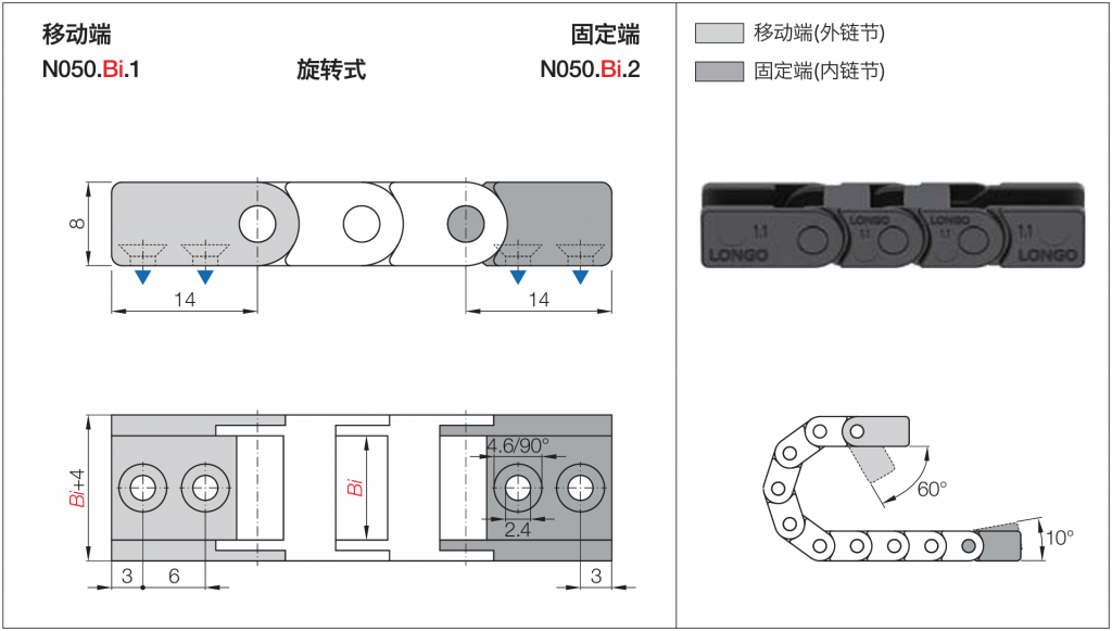 | 拖链代码 | Bi [mm] | Ba [mm] | R [mm] | 重量 [kg/m] |