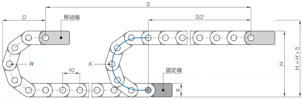 拖链长度 Lk = S/2+K